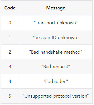 socket.emit("hello", "world")는 아래와 함께 42["hello", "world"]를 포함하는 단일 WebSocket 프레임으로 전송됩니다.