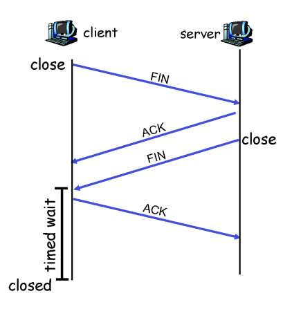 A. client가 보낸 ACK가 중간에서 소실되면 server는 Timeout이 될 때 해당 FIN을 다시 보낼 텐데 만약 client가 Time wait을 하지 않고 바로 통신을 closed 하고 나가버린다면 server는 영원히 FIN에 대한 ACK를 받지 못할 것이고 이는 server가 영원히 client에게로 FIN을 보낸다는 것이다. 이를 방지하고자 일정 시간 동안 client는 time wait을 갖는다.