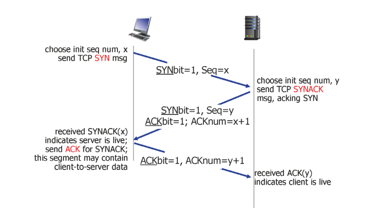 - segment header를 보면 SYN이라는 공간이 있는데 보통은 0이지만 3-way-handshake를 시작할 때 해당 bit를 1로 적어 보낸다.