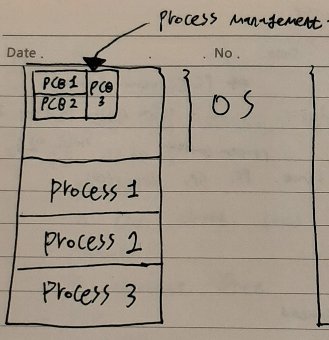 PCB는 OS 안에 있는 process management 안에 기록되어 있다. 정부가 우리의 정보(주민 등록 번호, 나이, 주소, 가족 관계 등등)를 갖고 있는 것과 비슷하다.