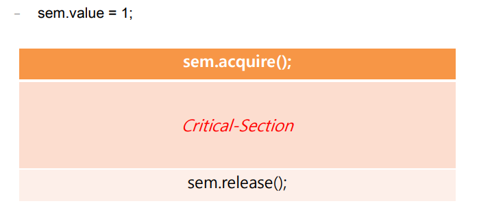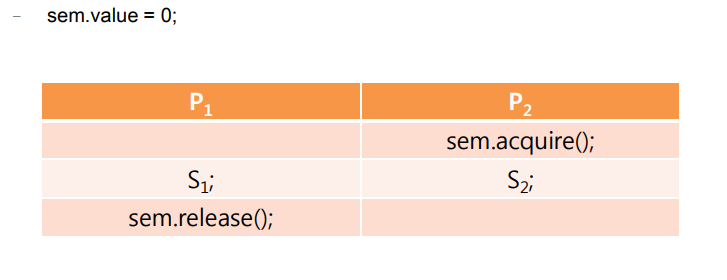 - 정수형 변수 하나와 두 개의 동작(P, V)로 이루어진 구조이다.