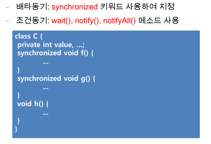 - 세마포어 이후의 프로세스 동기화 도구다. 세모포어 보다 고수준 개념이며 자바에서 많이 쓰인다.