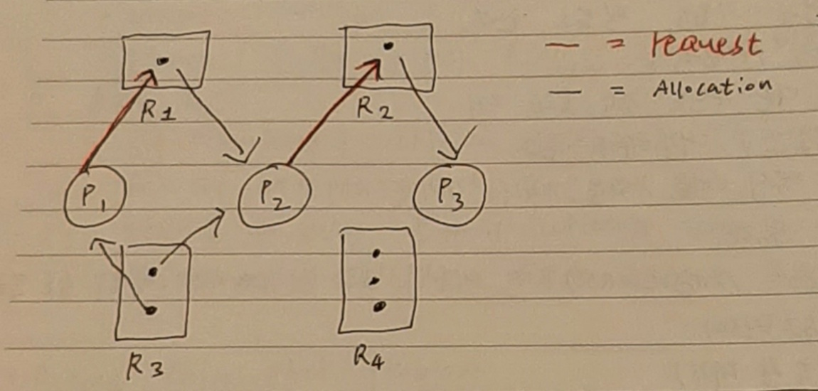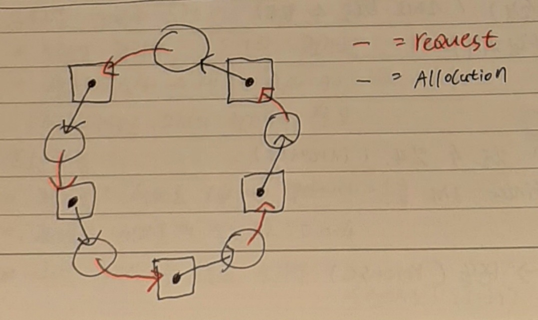 - 자원 할당도를 그렸을 때 반복되는 부분이 있다면 환형 대기가 있는 것이다.
