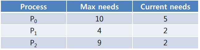 - 이러한 상황을 회피하는 알고리즘은 Banker's Algorithm이 있다.