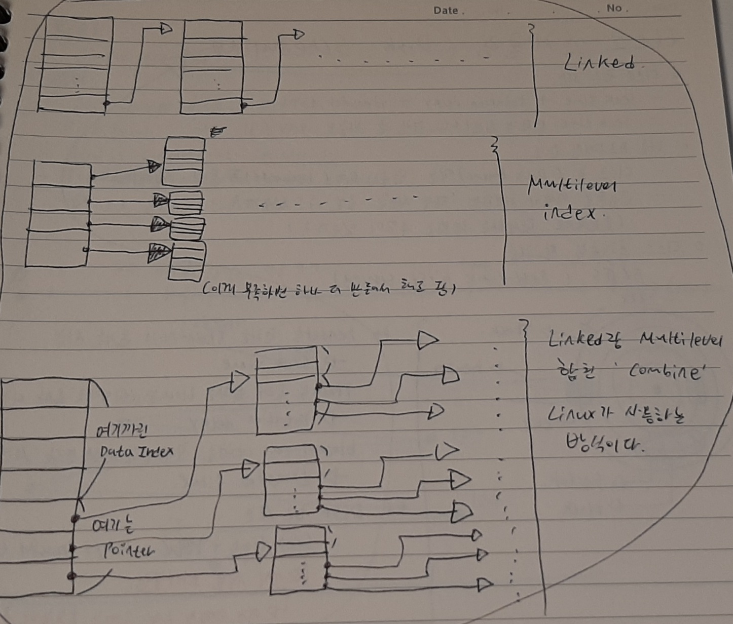 - Linked는 인덱스 블록의 마지막에 다음 인덱스 블록의 주소를 넣는 것이다.